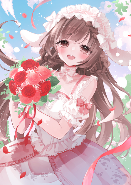 Vライバープロダクション【V-iii】所属 美月ユキノ様より、デビュー2周年記念イラストをご依頼いただきました。花束を持って楽しそうなイラストに仕上げました。
